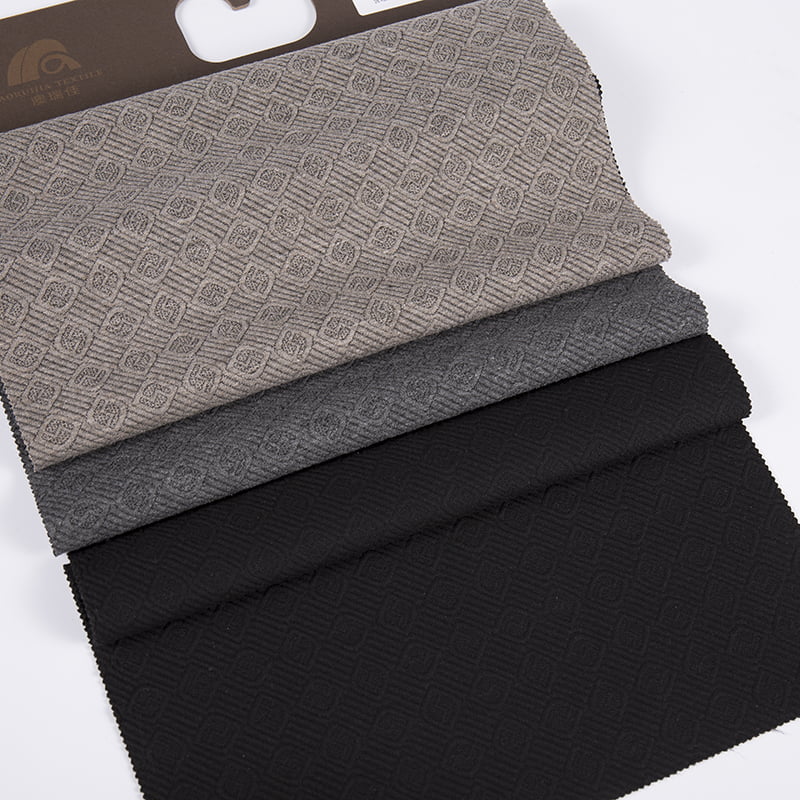 도매 의류 AW23019를 위한 양각 다이아몬드 능직물 니트 자카드 폴리에스테르 비스코스 스판덱스 운동복 직물