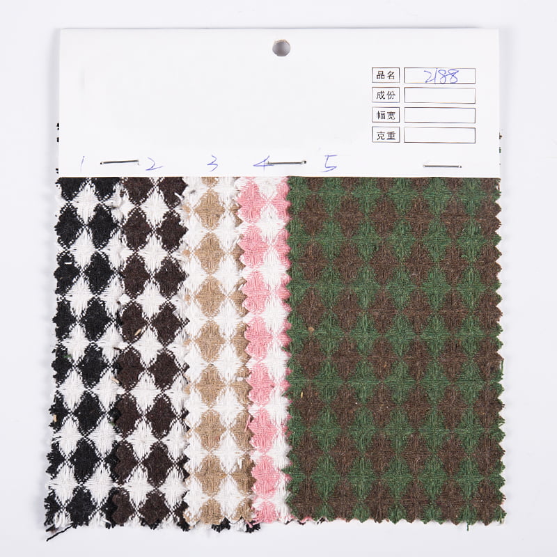 Diamond Check Jacquard Embossed Fabric 2188은 100% 화학 섬유로 제작된 전문 원단입니다. 원단은 독특한 다이아몬드 체크를 핵심 디자인 요소로 사용합니다. 고급 자카드 기술을 통해 이 클래식한 패턴이 원단 표면에 정확하게 직조됩니다. 각 다이아몬드 노드는 패턴의 무결성과 명확성을 보장하기 위해 신중하게 처리되어 매우 높은 수준의 장인 정신과 세부적인 제어를 보여줍니다. 소재 선택 측면에서 2188 패브릭은 고품질 화학 섬유를 사용하여 패브릭의 내구성, 주름 방지 및 손쉬운 관리를 보장합니다. 화학섬유는 안정적인 물리적, 화학적 특성으로 인해 직물에 우수한 치수 안정성을 제공하고 쉽게 변형되거나 수축되지 않습니다. 동시에, 화학 섬유의 내마모성과 인열 저항성도 직물의 수명을 크게 향상시켜 다양한 응용 시나리오에서 우수한 성능을 유지할 수 있습니다. 정교한 자카드 기술과 고품질 화학 섬유 소재 외에도 2188 패브릭은 엠보싱 기술을 사용하여 패브릭의 질감과 시각적 효과를 더욱 향상시킵니다. 엠보싱 기술은 원단 표면에 특수처리를 하여 섬세하고 레이어드된 입체감을 선사하여 원단의 촉감과 시각적 효과를 높여줍니다. 이 독특한 엠보싱 디자인은 원단의 전반적인 품질을 향상시킬 뿐만 아니라 다양한 장식 및 의류 응용 분야에서 더욱 눈길을 끕니다.