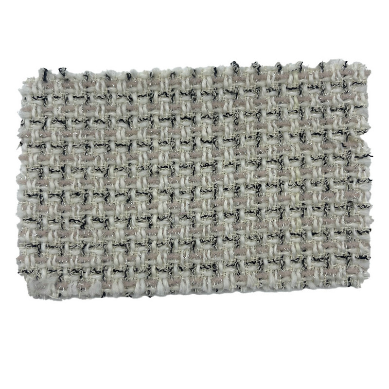품목 23523으로 지정된 이 직물은 폴리에스테르 78%, 울 12%, 면 10%로 구성된 트위드 직물입니다. 단위면적당 질량이 440gsm으로 드레스에 적합한 중중량의 구조를 보여줍니다. 라이트 핑크 베이스는 직조 과정에서 메탈릭 원사와 통합된 체크 패턴이 특징입니다. 이 조합은 시각적 외관과 빛 반사 모두에서 대비를 만듭니다. 폴리에스터, 울, 면의 혼방은 직물의 치수 안정성, 열 조절 및 수분 관리에 기여합니다. 이러한 기술적 특성으로 인해 이 트위드는 패턴 정의와 소재 성능이 요구되는 패션 드레스에 적용 가능합니다.