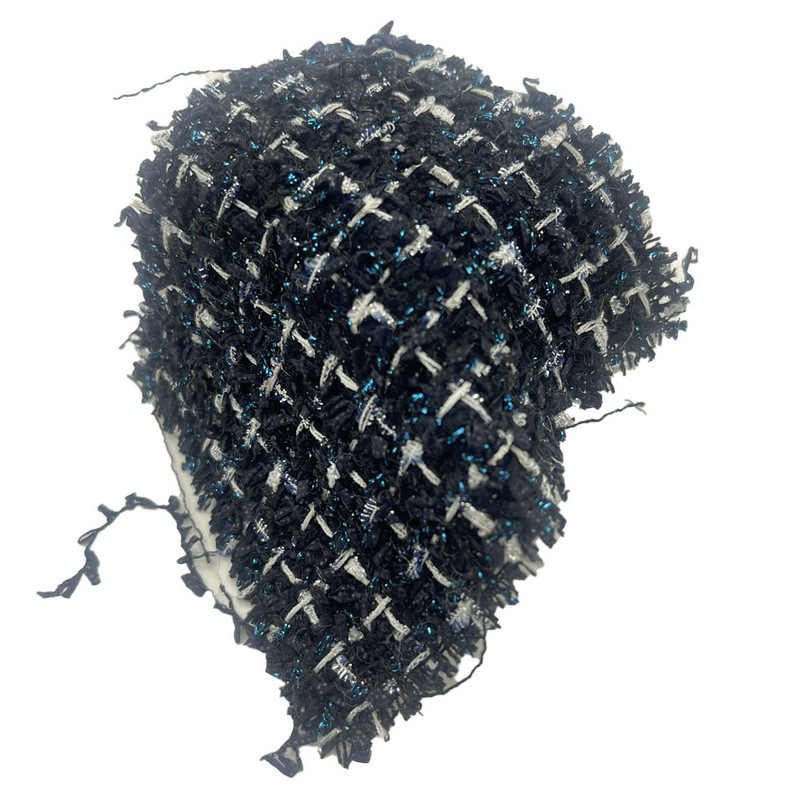 품목 23511로 지정된 이 직물은 폴리에스테르 86%와 나일론 14%로 구성된 체크 트위드 직물입니다. 단위 면적당 질량이 340gsm으로 경량 구조를 제공합니다. 다크 블루 베이스는 체크 패턴 안에 블루 메탈릭 원사를 넣어 다양한 빛 반사를 통해 대비되는 시각적 효과를 연출합니다. 폴리에스터-나일론 혼합 소재는 치수 안정성과 구조적 일관성을 제공합니다. 금속 요소를 포함하면 직조 표면에 빛과 상호 작용하는 특성이 추가됩니다. 이러한 기술 사양 덕분에 이 트위드 원단은 정의된 패턴 연결과 미묘한 표면 변화가 필요한 여성 의류에 적용할 수 있습니다.