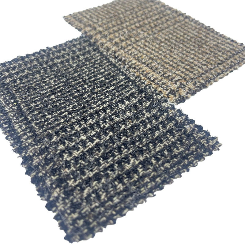 품목 4336으로 지정된 이 직물은 양모 5%와 기타 섬유 95%로 구성된 트위드 직물입니다. 단위 면적당 질량이 550g/m로 중량급 구조를 나타냅니다. 블랙과 브라운 색상의 표면은 체크 패턴과 물떼새 격자 무늬를 결합하고 직조 과정에서 메탈릭 원사와 통합됩니다. 이 기술은 기하학적 패턴이 빛 반사 요소로 강조되는 복합 디자인을 만듭니다. 메탈릭 원사가 포함되어 우븐 베이스에 대조적인 시각적 효과를 더해줍니다. 기술 사양에 따라 다층적인 시각적 복잡성과 구조적 밀도를 갖춘 재료가 생성되므로 패턴 접합 및 표면 변형이 필요한 프로젝트에 적용할 수 있습니다.