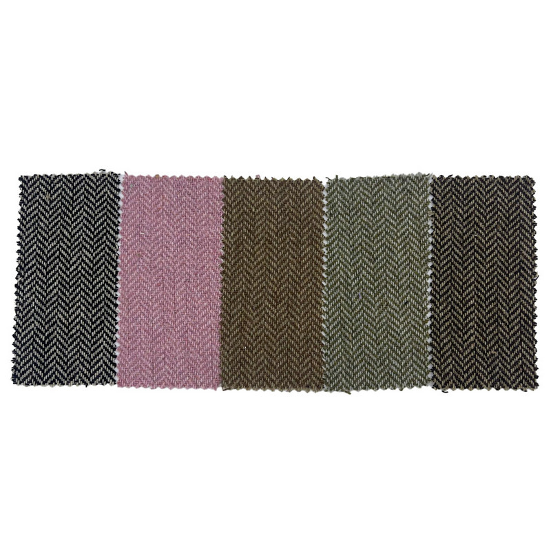 품목 3532로 지정된 이 직물은 양모 20%와 기타 섬유 80%로 구성된 자카드 직물입니다. 단위 면적당 질량이 500g/m로 중~중량급 구조를 나타냅니다. 핑크색 표면에는 자카드 직조 공정을 통해 만들어진 헤링본 패턴이 있으며, 패브릭 전체에 정밀한 V자 모양 모티프를 형성합니다. 이 기술은 정의된 기하학적 반복으로 일관된 방향 텍스처를 생성합니다. 울 혼방 구성은 직물의 열적 특성과 형태 유지에 기여합니다. 이러한 기술적 특성으로 인해 구조적 밀도와 패턴 선명도를 갖춘 소재가 탄생하여 시각적 선명도와 치수 안정성이 모두 요구되는 바지에 적용할 수 있습니다.
