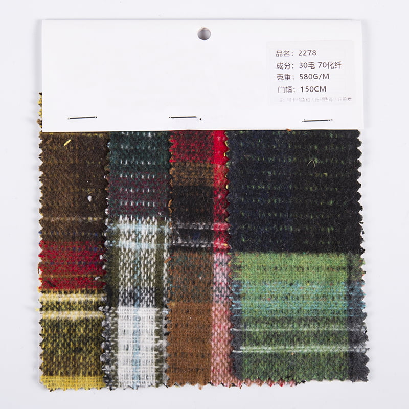 도매 타탄 체크 멀티컬러 울 30% 화학섬유 트위드 원단 2278
