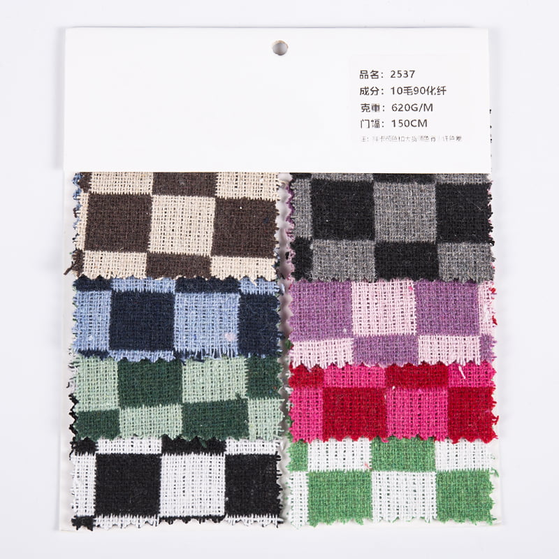 도매 비시 컬러풀 10% 울 90% 화학 섬유 격자 무늬 트위드 원단 2537