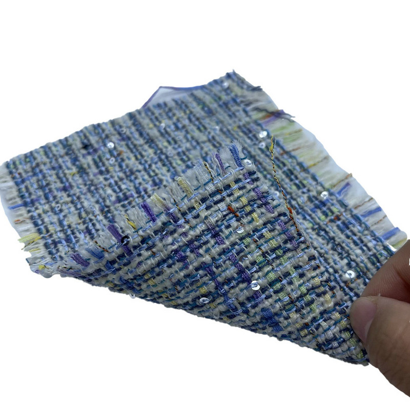 품목 ZZH24018로 지정된 이 직물은 울 20%와 폴리에스테르 80%로 구성된 트위드 직물입니다. 단위 면적당 질량이 560g/m인 이 소재는 중간 무게 구조를 나타냅니다. 패브릭에는 트위드 구조 내에 고정된 메탈 스팽글이 포함되어 있어 표면 전체에 간헐적으로 빛이 반사됩니다. 울과 폴리에스터 혼방은 천연 섬유 특성과 구조적 일관성 사이의 균형을 제공합니다. 이 조합을 통해 표면 질감 변화와 치수 안정성을 갖춘 재료가 탄생합니다. 이러한 사양으로 인해 이 트위드 원단은 시각적인 흥미와 실용성을 모두 고려한 여성용 드레스 코트에 적용 가능합니다.